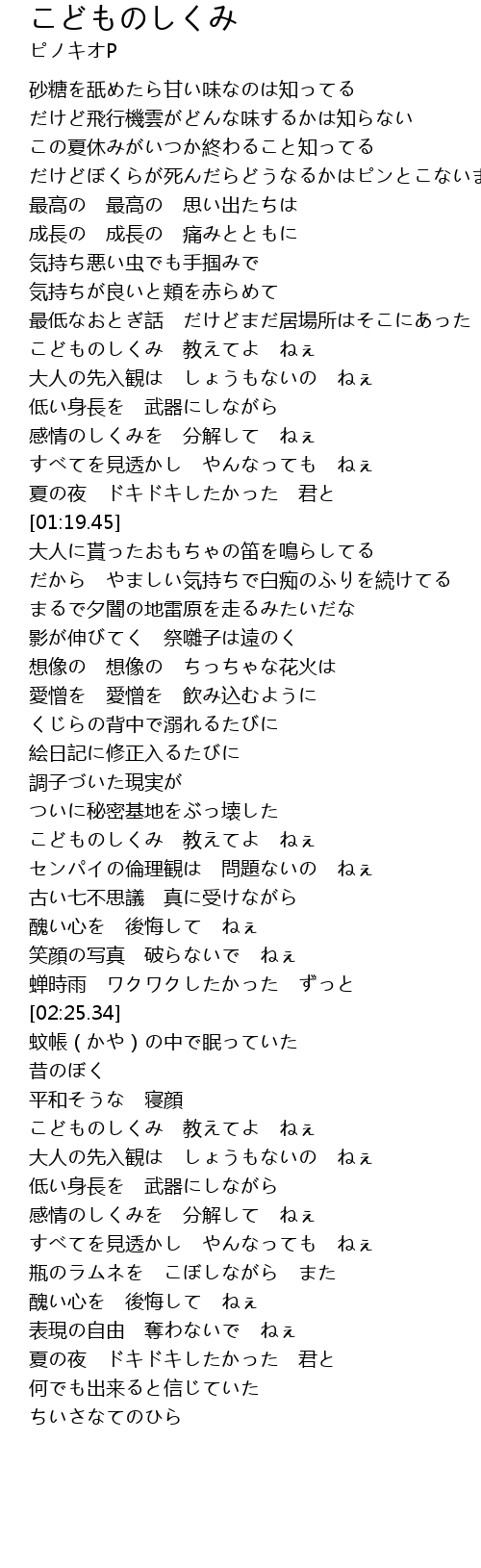 | [01:59.03] | こどものしくみ 教えてよ ねぇ |