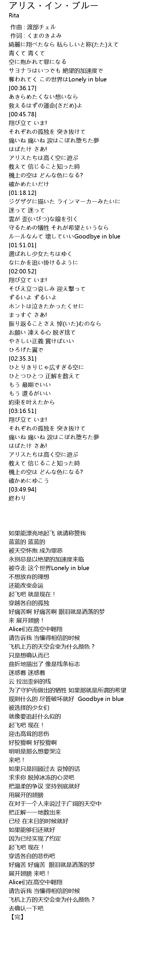 | [01:46.10] | ルールなんて 壊していいGoodbye in blue |