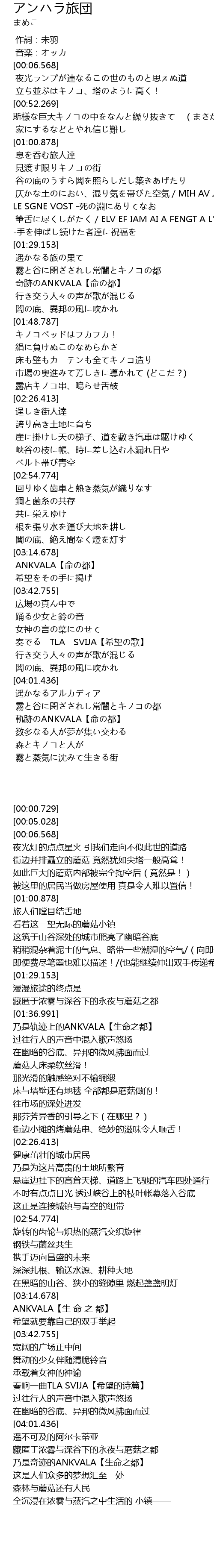 | [01:36.991] | 奇跡のANKVALA【命の都】 |