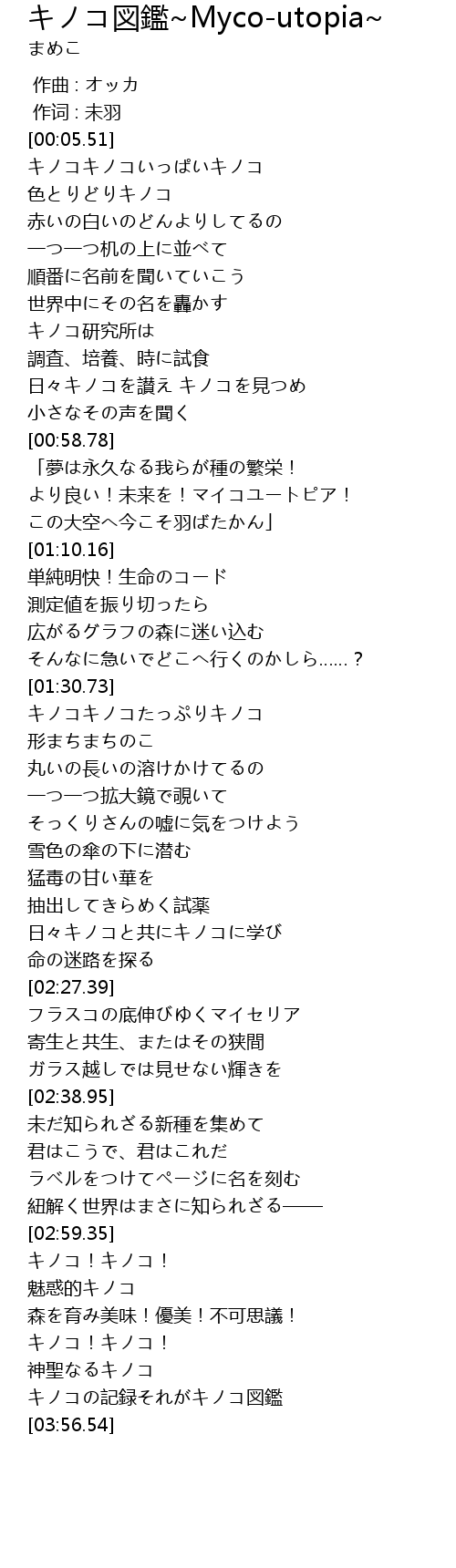 | [03:51.12] | キノコの記録それがキノコ図鑑 |