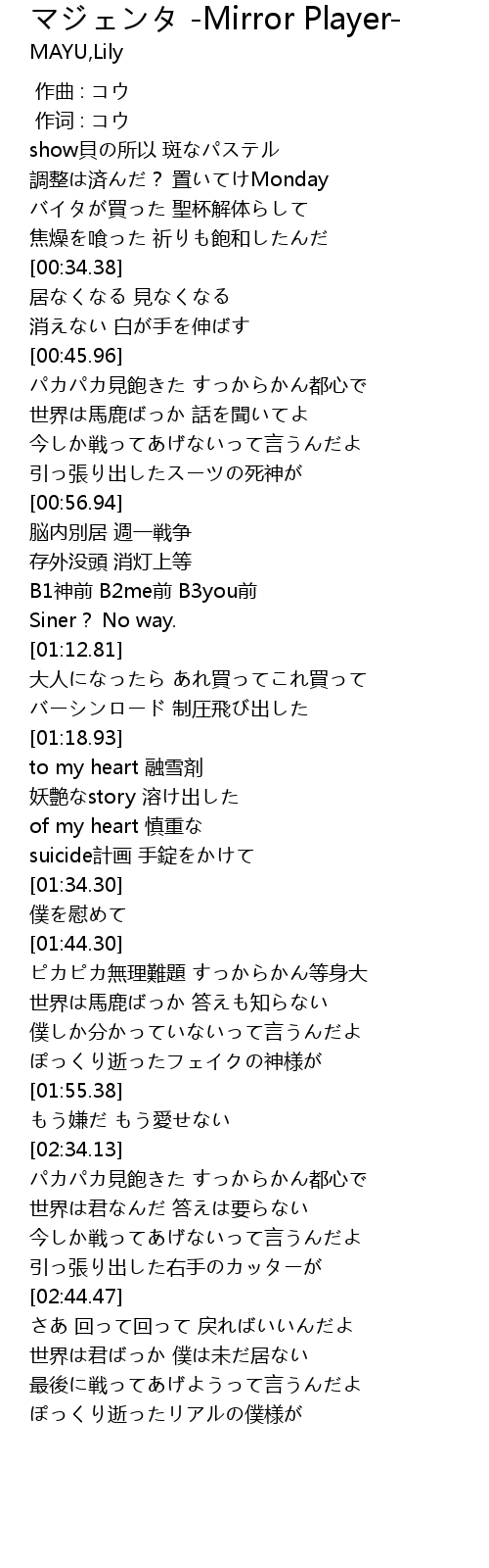 | [01:27.56] | suicide計画 手錠をかけて |