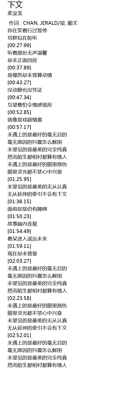 | [02:46.28] | wú cóng yán shēn de qiān yǐn bú huì yǒu xià wén |