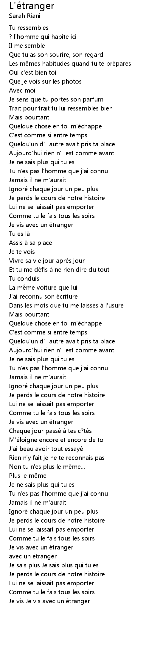 | Song | L'étranger |