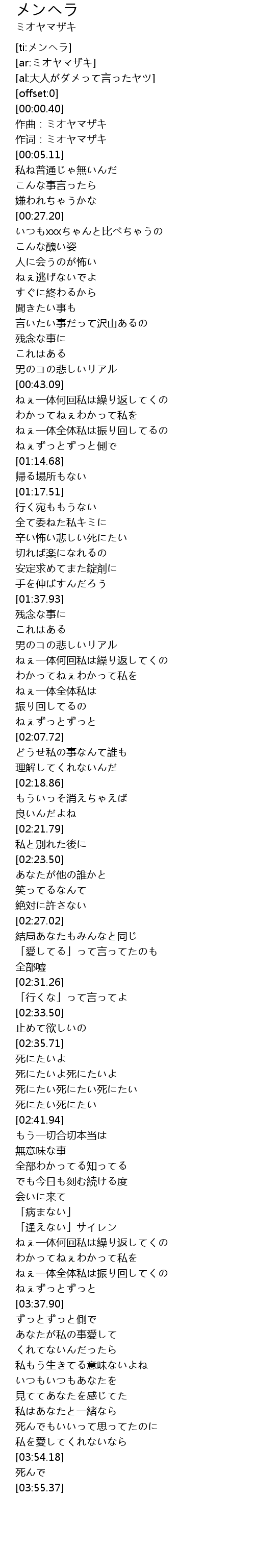 | [00:02.39] | 作曲:ミオヤマザキ |