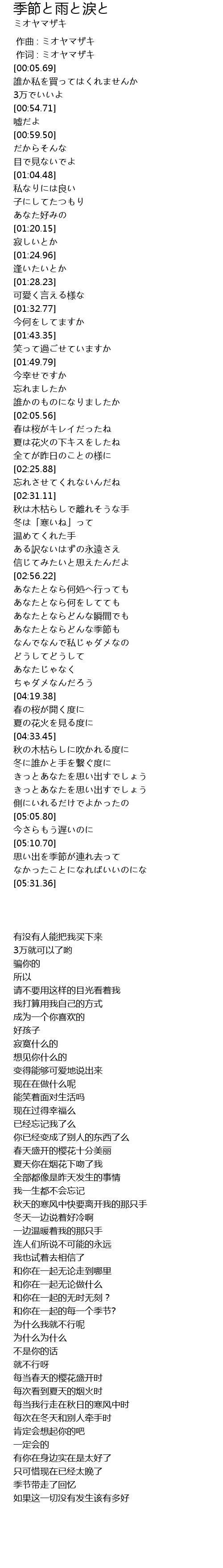 | [00:01.00] | 作词 : ミオヤマザキ |