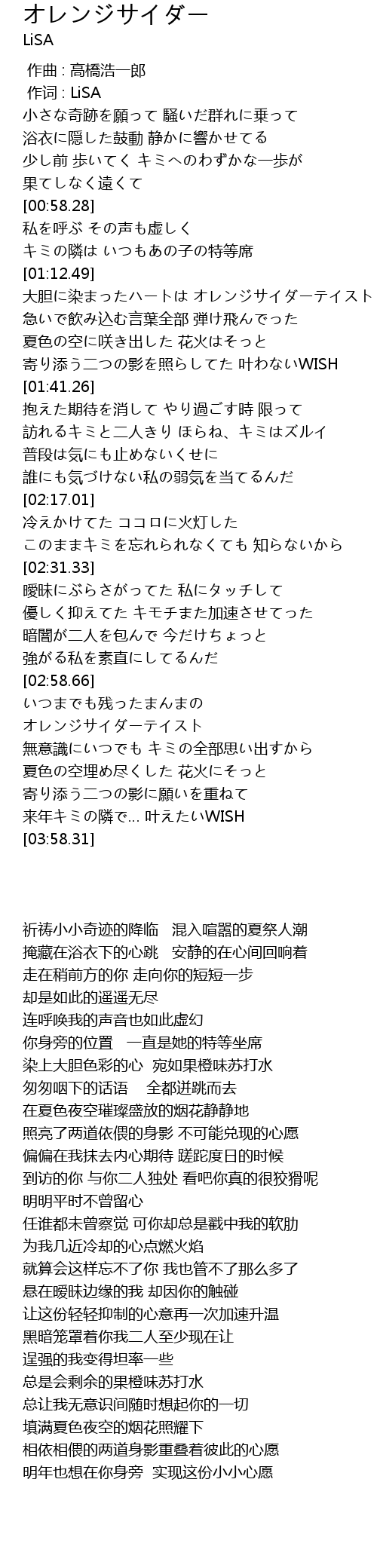 | [03:23.13] | いつまでも残ったまんまの オレンジサイダーテイスト |