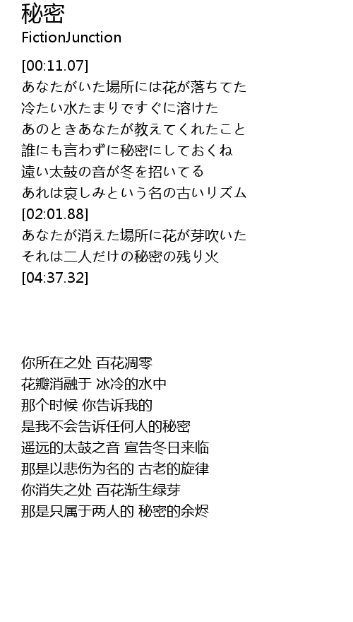 | [01:08.00] | 誰にも言わずに秘密にしておくね |