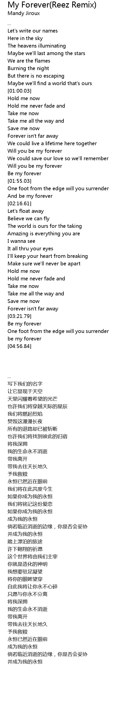 My Forever(Reez Remix) Lyrics