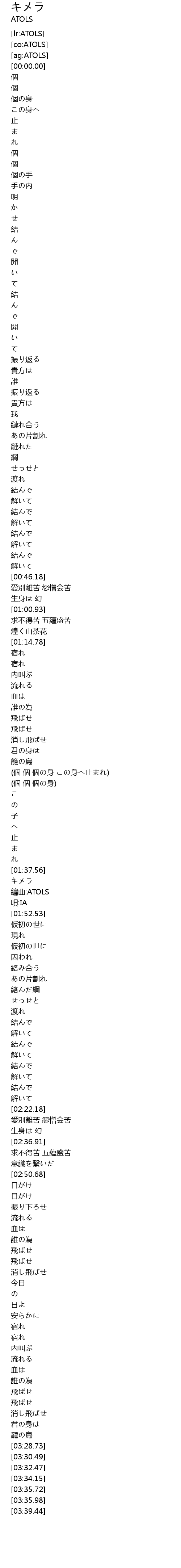 | [01:48.94] | 編曲:ATOLS |