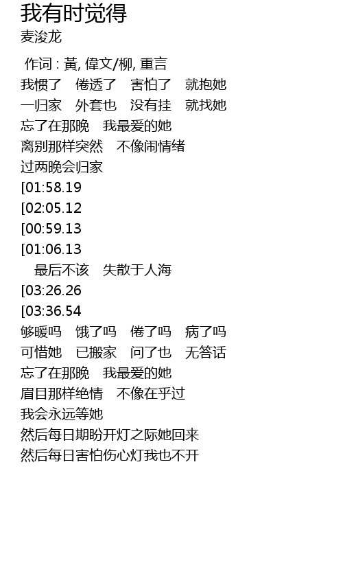 | [02:22.36][03:36.54] | zhè duàn fēn kāi bù guò kǎo yàn ài |