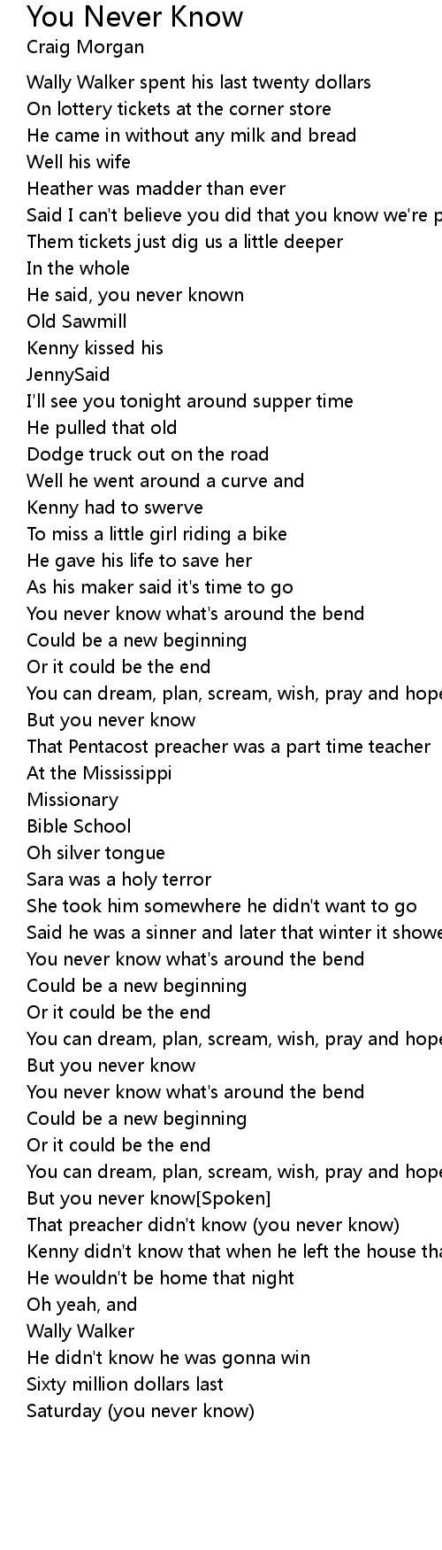 You Never Know Lyrics