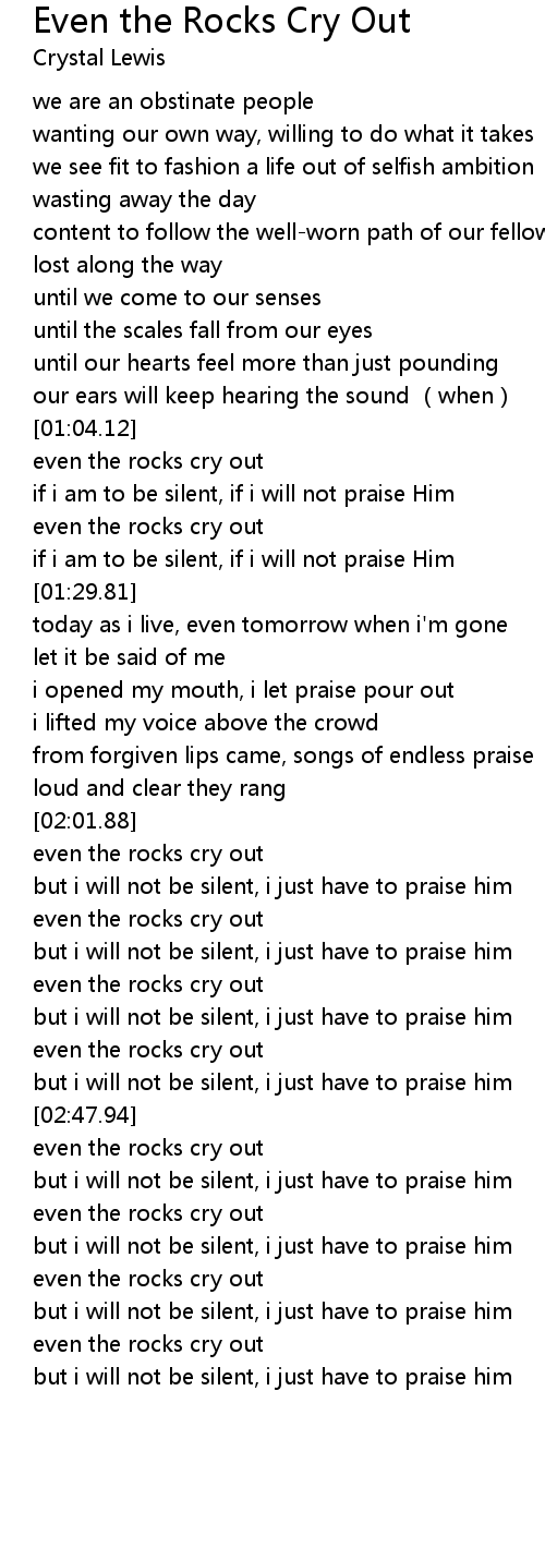 | [01:23.43] | if i am to be silent, if i will not praise Him |