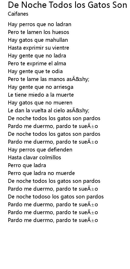 | Song | De Noche Todos los Gatos Son Pardos |