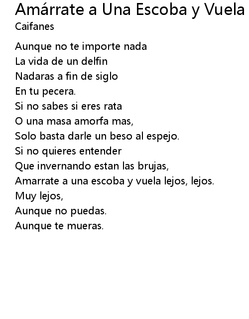 | Song | Amárrate a Una Escoba y Vuela Lejos |