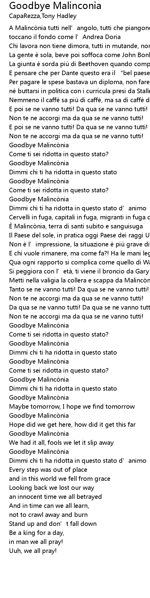 | Goodbye Malincò nia | |