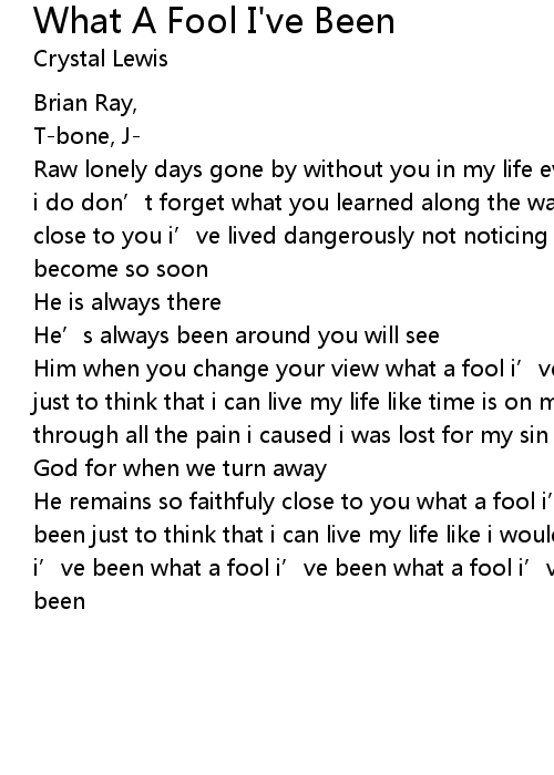 | He remains so faithfuly close to you what a fool i’ve been what a fool i’ve been just to think that i can live my life like i would never die what a fool i’ve been what a fool i’ve been what a fool i’ve been what a fool i’ve been |