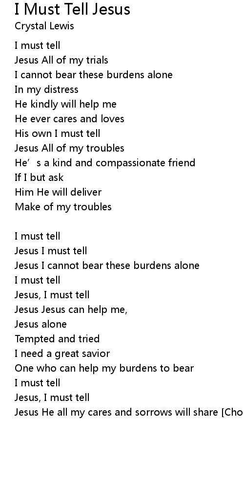 | Jesus He all my cares and sorrows will share [Chorus] |