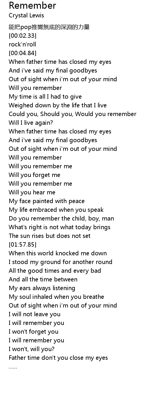 | [00:55.67] | Will you remember me |