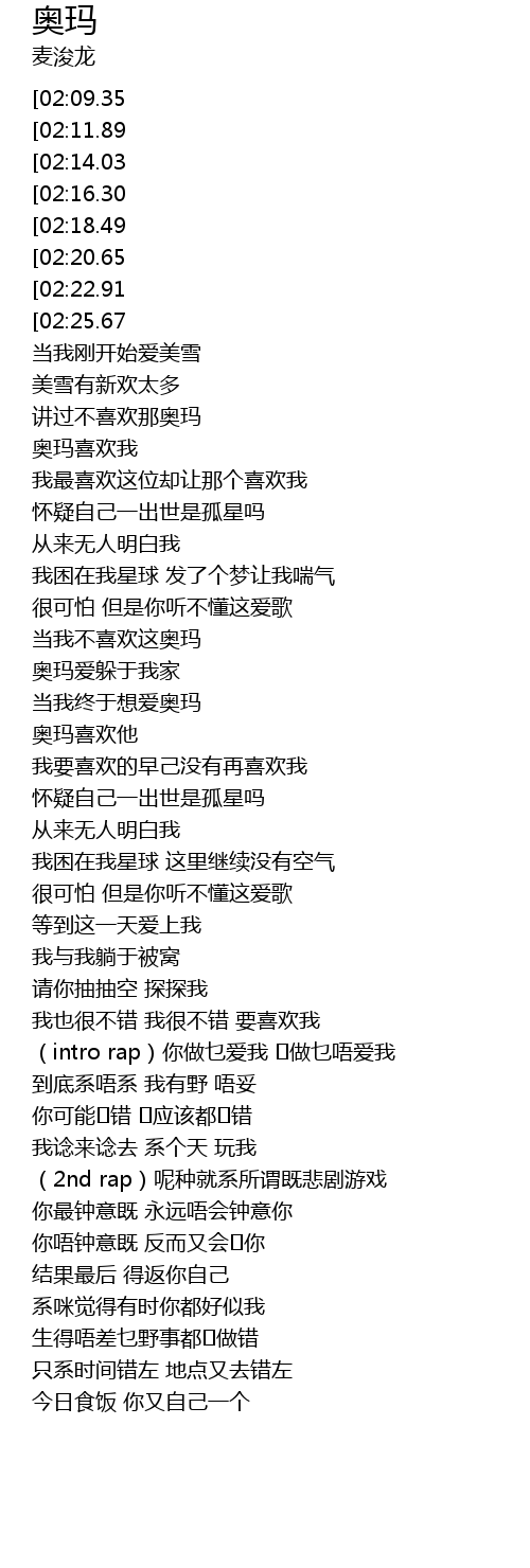 | [00:18.56] | (intro rap)你做乜爱我 �做乜唔爱我 |