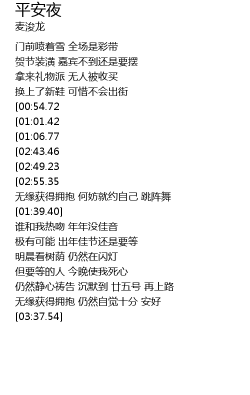 | [02:25.58][00:54.72] | * 夜 平安到被那全城情侣违下 |