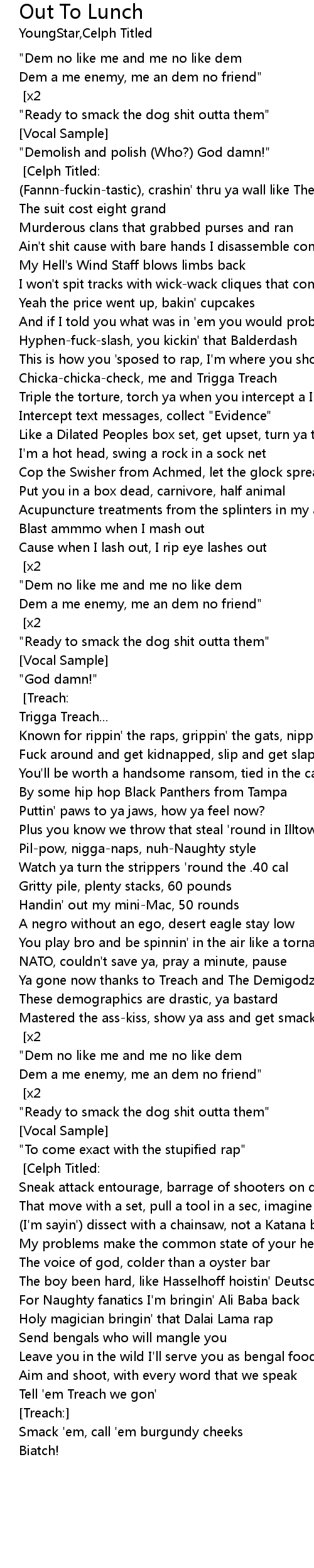 Ya gone now thanks to Treach and The Demigodz |