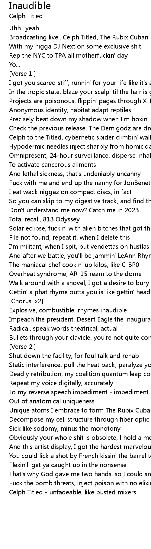 Explosive, combustible, rhymes inaudible |