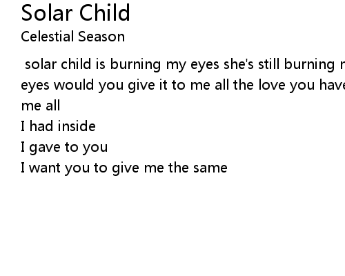 | [lyrics:Stefan Ruiters] solar child is burning my eyes she's still burning my eyes would you give it to me all the love you have child...would you give it to me all | |