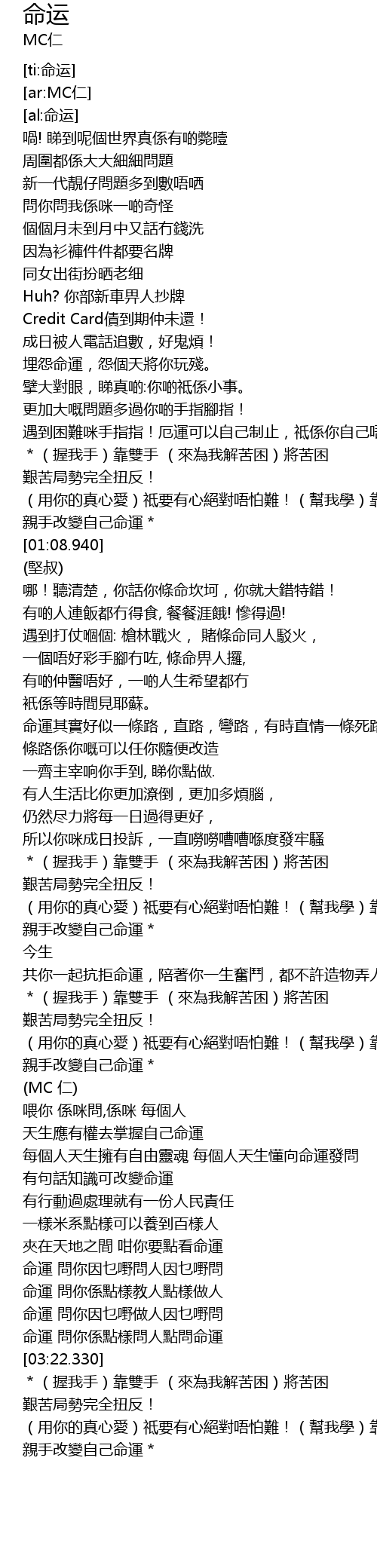| [03:08.490] | 命運 問你係點樣教人點樣做人 |
