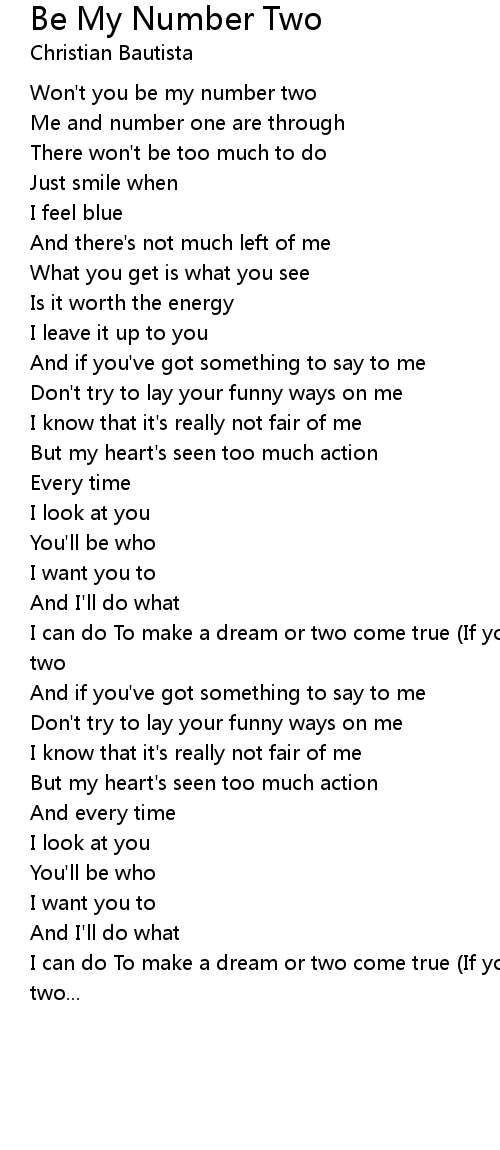 I can do To make a dream or two come true (If you'll be) if you'll be my number, two... |
