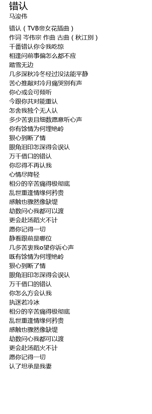 错认 cuo ren Lyrics