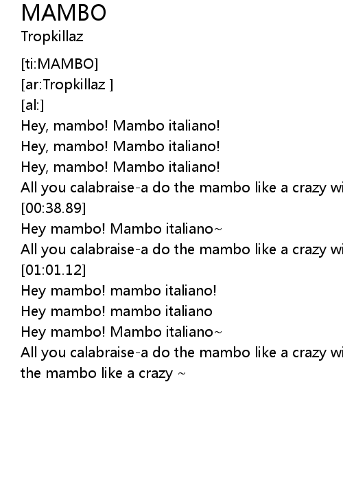 [00:09.68] All you calabraise-a do the mambo like a crazy with a