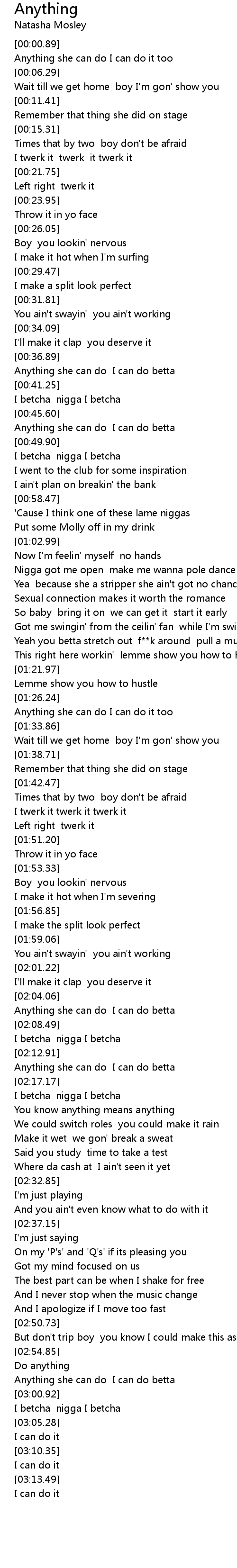 Anything she can do I can do it too |