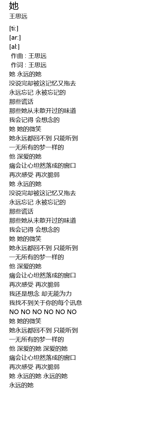 | [00:00.00] | zuò qǔ : wáng sī yuǎn |