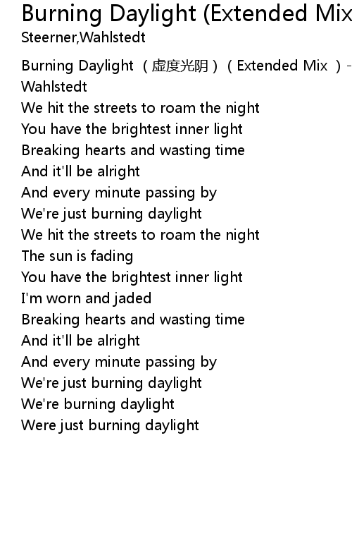 | [00:00.00] | Burning Daylight (虚度光阴)(Extended Mix )-Steerner x Wahlstedt |