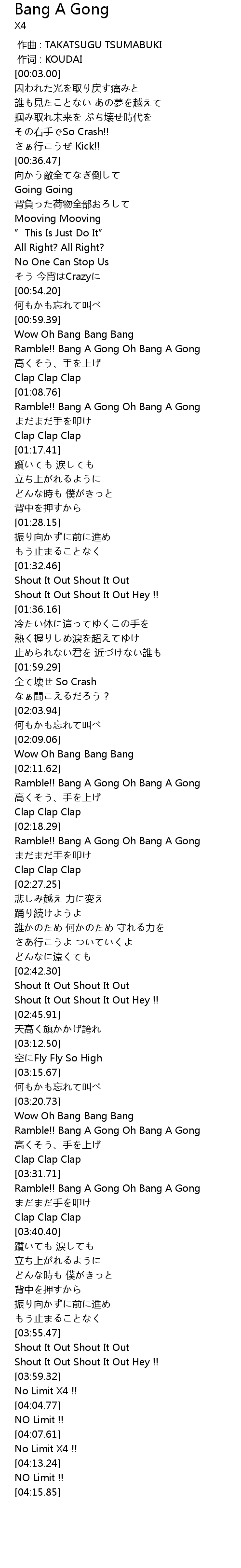 | [02:20.99] | Ramble!! Bang A Gong Oh Bang A Gong |