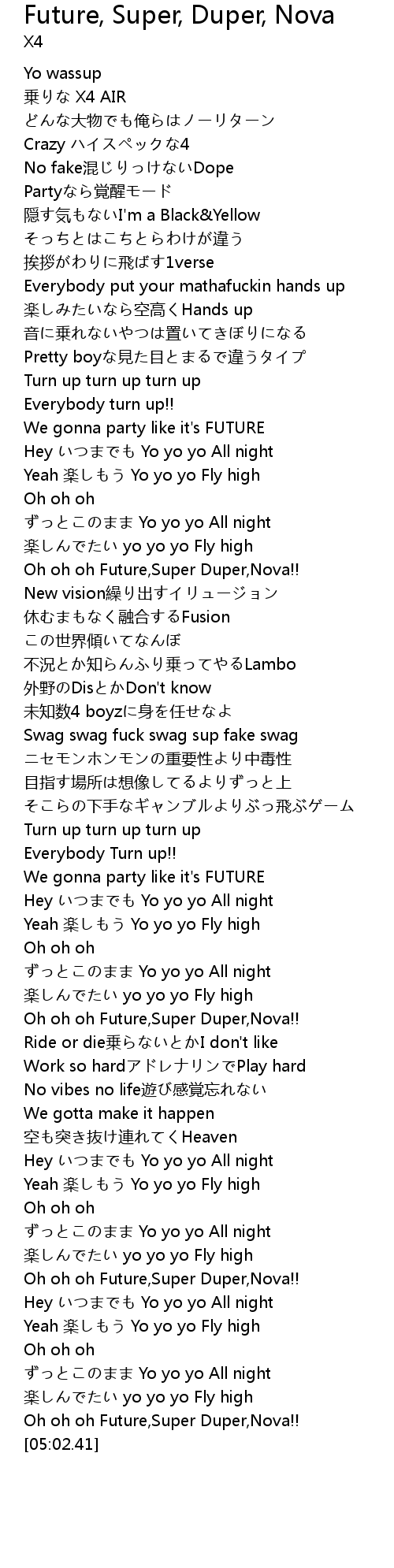 | [04:52.68] | Oh oh oh Future, Super Duper, Nova!! |