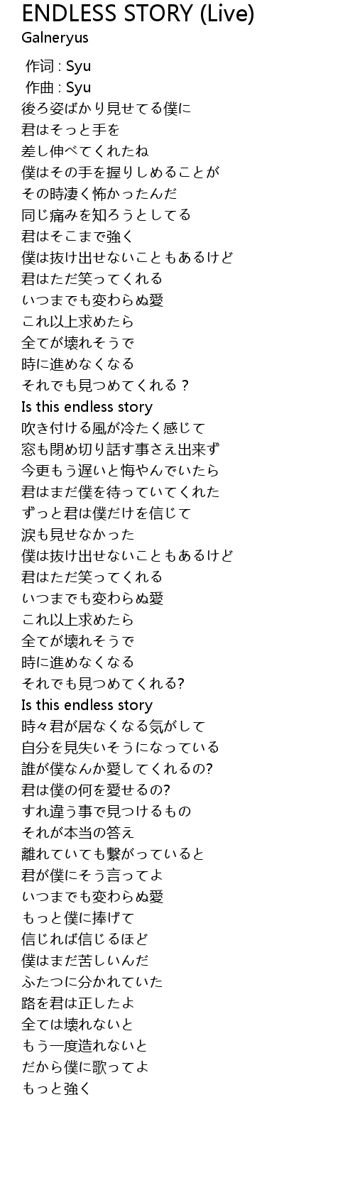 | [03:11.000] | Is this endless story |