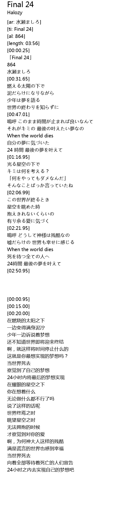 | [01:08.99] | 24 shi jian zui hou meng ye |