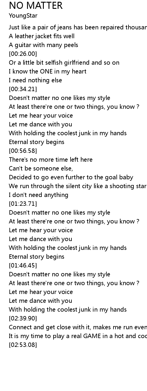 | [01:24.69] | Doesn't matter no one likes my style |