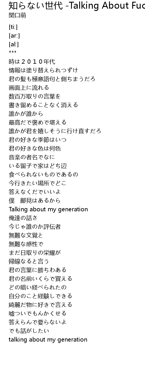| Song | 知らない世代 -Talking About Fuck'in My Generation |