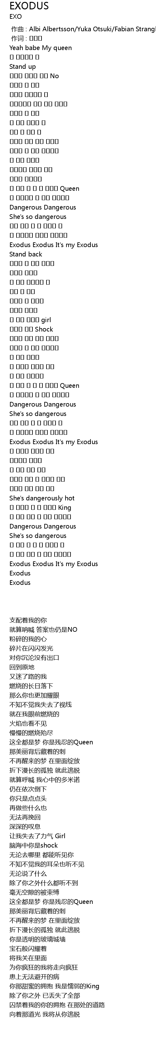 | [01:11.000] | Exodus Exodus It' s my Exodus |
