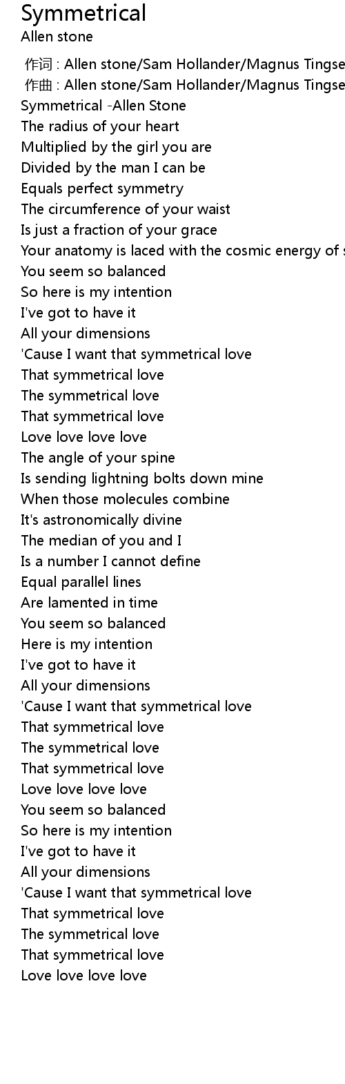 | [00:00.900] | Symmetrical -Allen Stone |