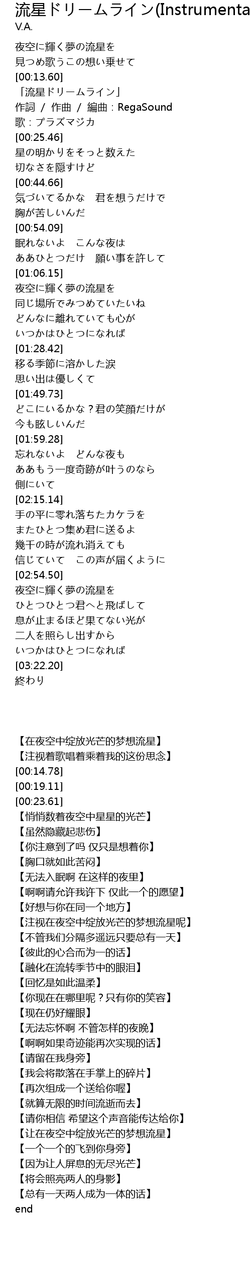 | [02:54.86] | 夜空に輝く夢の流星を |