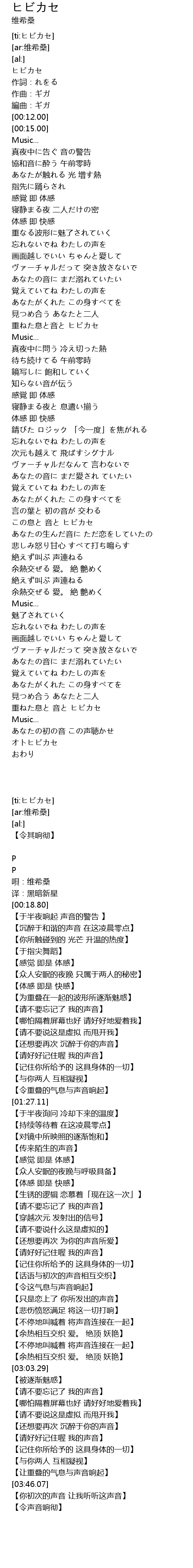 | [00:39.30] | あなたが触れる 光 増す熱 |