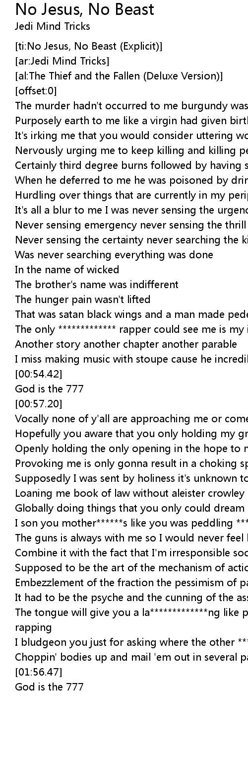 [01:51.21] I bludgeon you just for asking where the other ************* rapper is