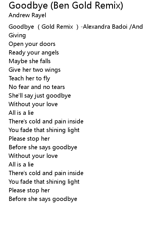 | [00:00.00] | Goodbye Gold Remix Alexandra Badoi Andrew Rayel |