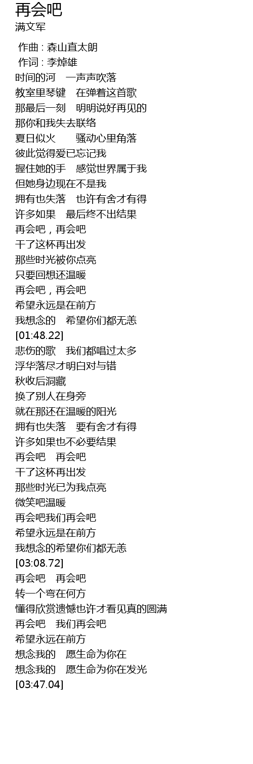| [03:17.68] | 懂得欣赏遗憾也许才看见真的圆满 |