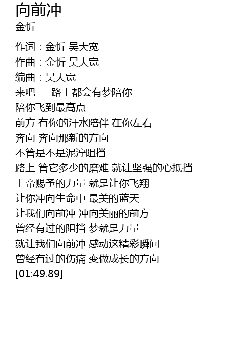 | [01:34.89] | 就让我们向前冲 感动这精彩瞬间 |