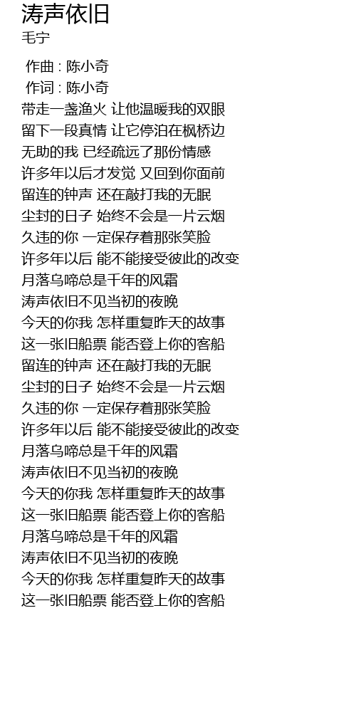 | [02:03.600] | 这一张旧船票 能否登上你的客船 |