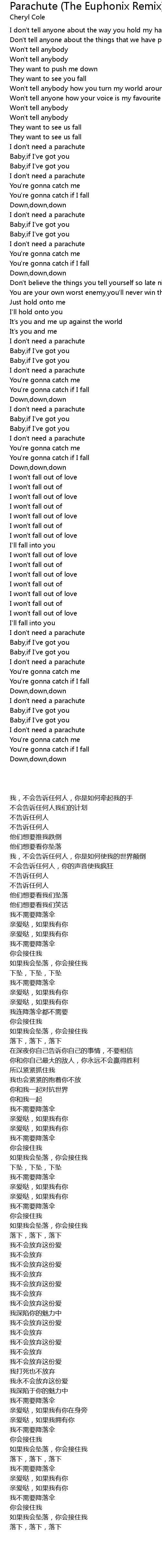Parachute (The Euphonix Remix) Lyrics